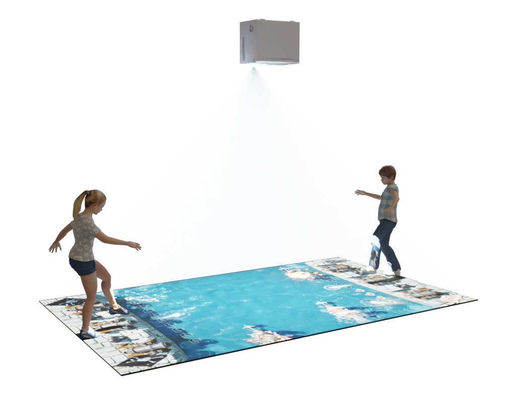 Другими словами, оборудование превращает поверхность пола в большой интерактивный экран. На экране отображается игровой мир, с которым ребенок может взаимодействует в режиме реального времени.