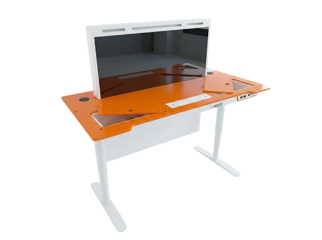 Режим «Письменный стол»: Одним нажатием кнопки монитор плавно, с помощью электропривода, опускается внутрь антивандального корпуса. Столешница становится абсолютно ровной. Это пространство можно использовать для настольных игр, письма, работы с карточками или методическими пособиями.