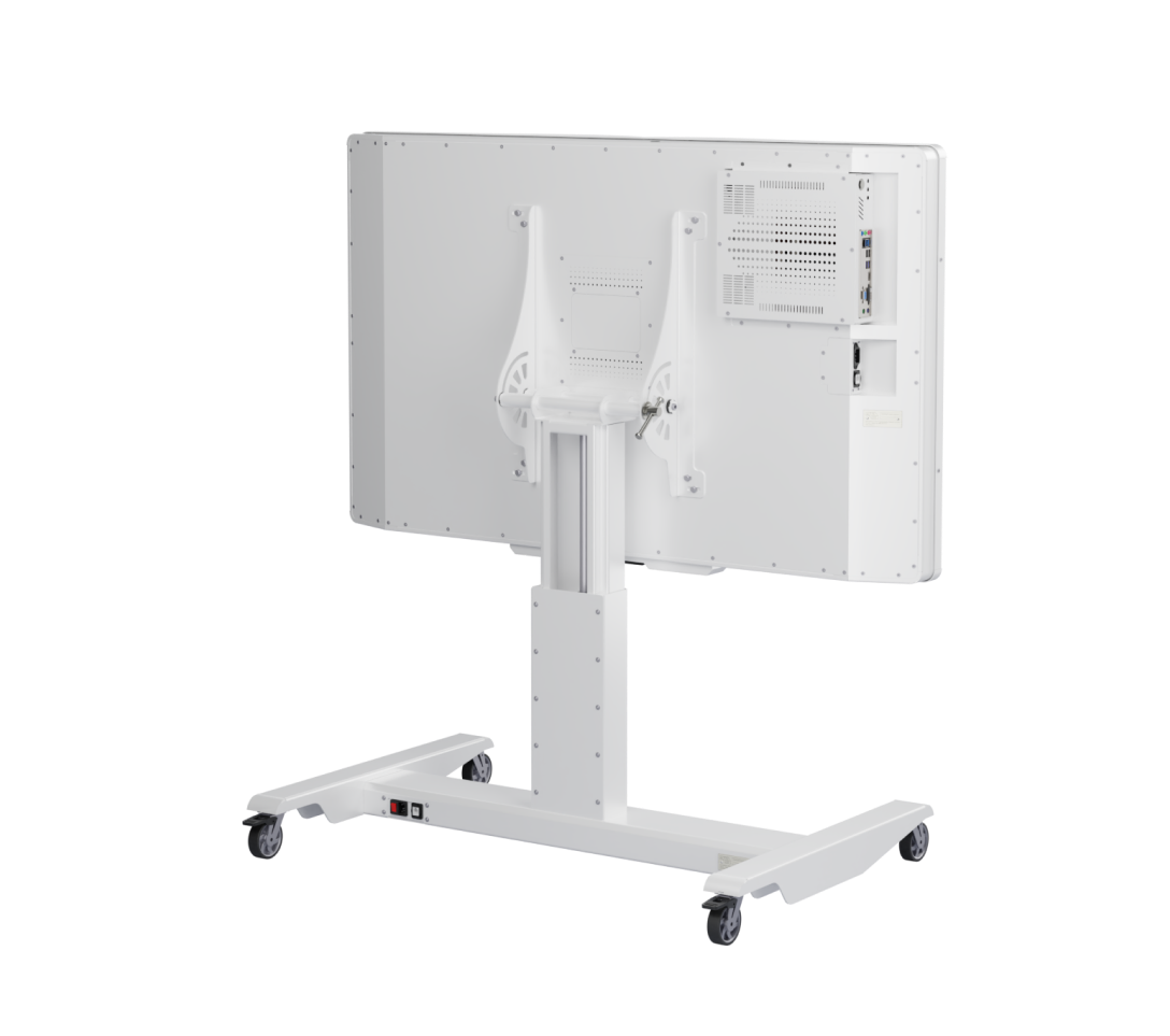 Угол наклона регулируется в пределах 90 градусов, высота — в пределах 27 - 55 см. Корпус выполнен из металла. Экран защищен ударопрочным каленым стеклом. Панель оснащена USB разъемами, встроенной звуковой системой и функцией «мультитач».