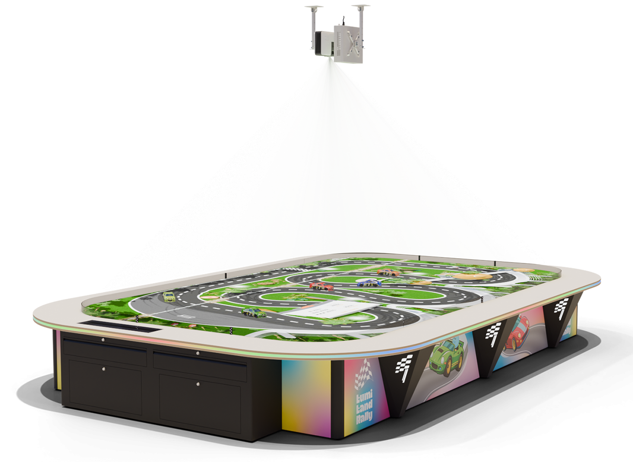 UTS Rally — это уникальный интерактивный аттракцион, где настоящие дрифт-машинки на радиоуправлении ездят по живой виртуальной трассе, созданной проектором, и взаимодействуют с игровыми объектами в режиме реального времени.
